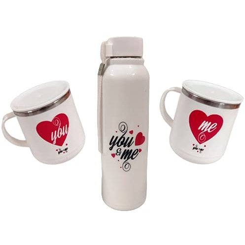 Jaypee Brightsteel Set – You and Me Edition: Set of 1 Bottle 690ml and 2 Mugs 230ml Each