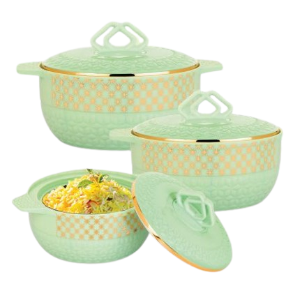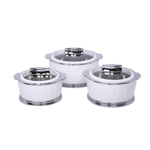 Luxura Klass casserole set designed to beautify your dining table and can be used for gifting purpose. This casserole set comes in three different sizes of 1500 ml, 2000 ml and 2500 ml with easy lockable toughened glass lid. The chrome finish handles gives aesthetic look to your dining area with embossed design. It is available in three different matte colours.