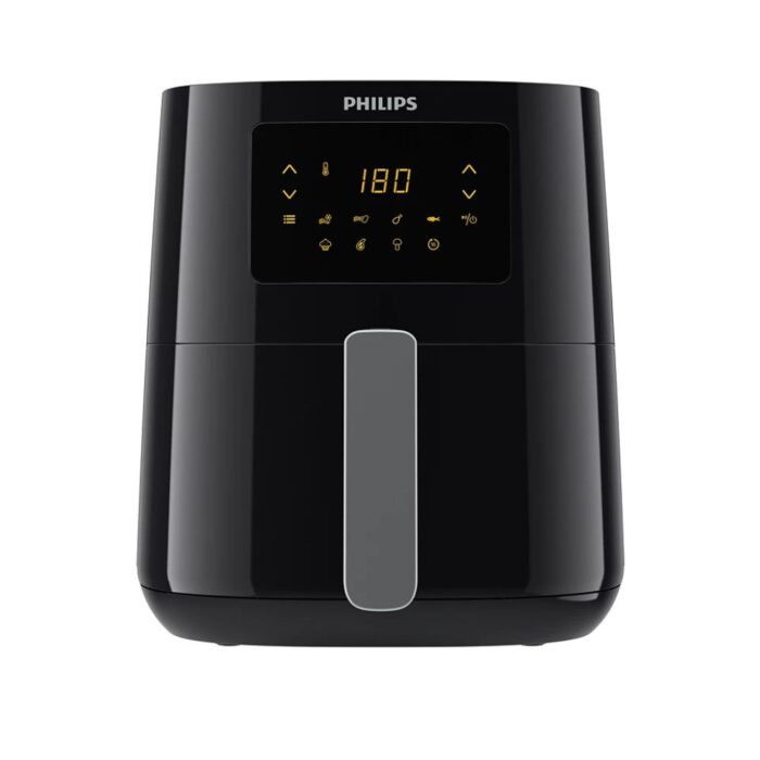 - Fry with up to 90% less fat – The Philips Essential Airfryer uses hot air to cook your favorite foods to crispy perfection, with up to 90% less fat.